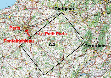 On prend donc l'orthogonale au trait Gérardmer - Etain - Carignan.
